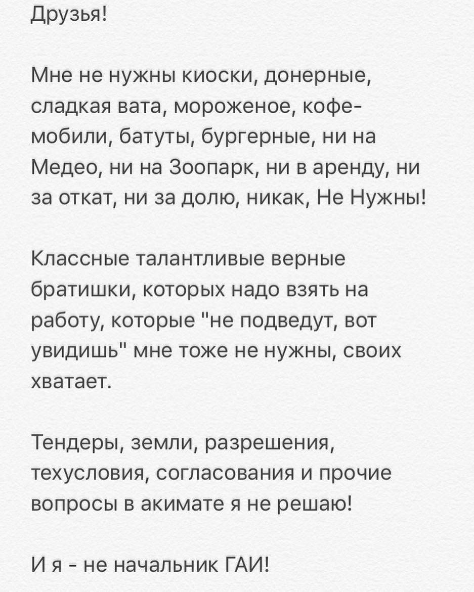 Я ещё даже не успел вступить в должность, а уже начали поступать звонки с просьбами не трогать тот или иной киоск. Иногда с тонкими намёками, иногда с не очень. "Мне бы вату поставить", "Мне бы батутчиков подвинуть", и всё такого характера.