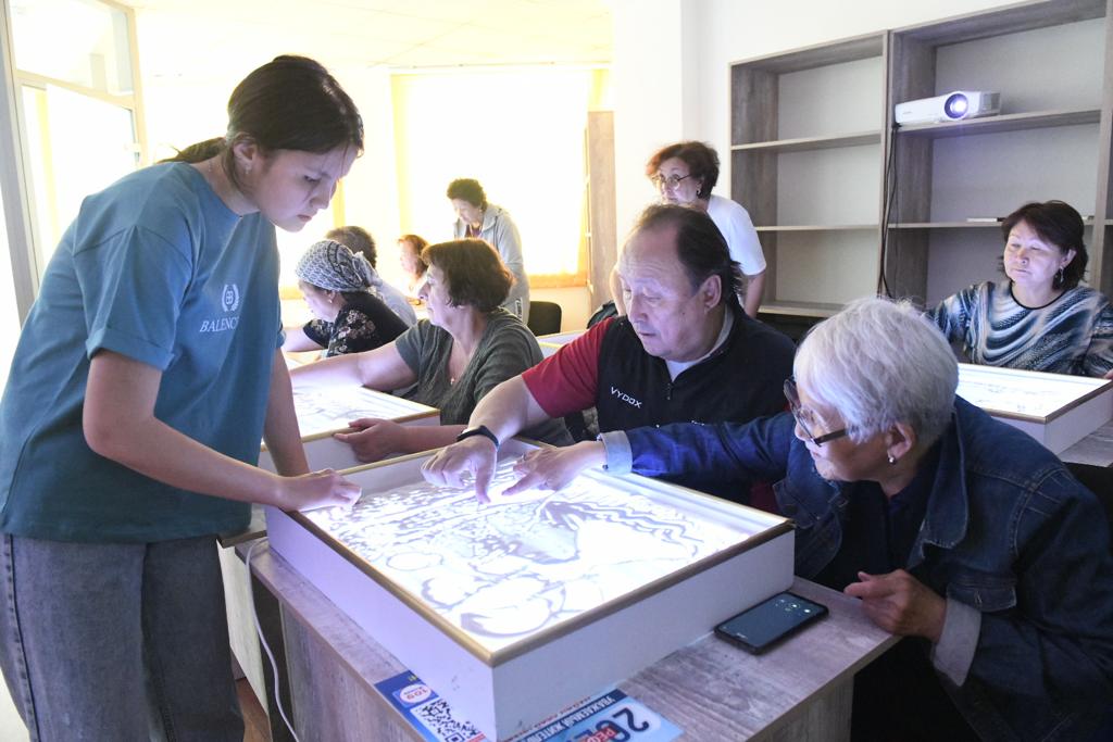 Жуырда орталықта зейнеткерлерге жаңа жоба – "Құм театры" арт-терапиясы ұсынылды. Шараның негізгі мақсаты – қарттарға мәдени-рухани демалыс сыйлау. Онда жоба авторы Ажар Ілияс пен анасы Айжан Жаркешова құмда сурет салу арқылы биші қайыңдар туралы аңызды көрсетті. Кейін қариялармен жеке жұмыс істеп, құммен сурет салу техникаларын үйретті.