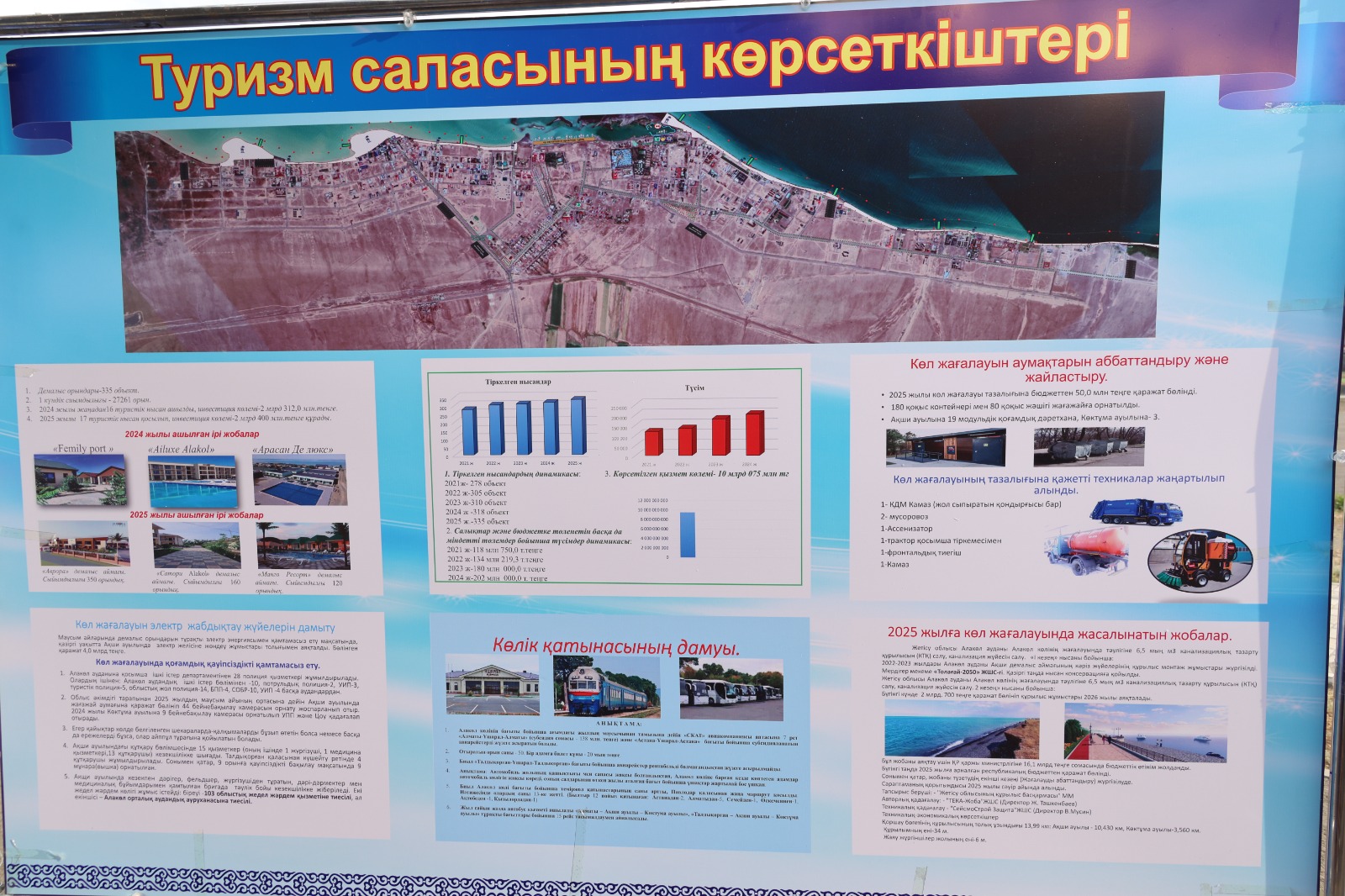 "2022 жылы өңірде 270 демалыс орны жұмыс істеп, 1 млн 498 мың адам демалса, көрсетілген қызмет көлемі 9 млрд 428 млн теңгені құраған. 2023 жылы демалыс базаларының саны 292-ге жетіп, туристер саны 1 млн 550 мың адамға, ал қызмет көлемі 9 млрд 920 млн теңгеге артты. Ал 2024 жылдың өзінде-ақ демалыс орындарының саны 302-ге дейін өсіп, 1 млн 725 мың адам Алакөл жағалауында тыныққан. Қызмет көлемі 10 млрд 75 млн теңгені құрап отыр. Мұндай көрсеткіштер Алакөл аймағындағы инфрақұрылымның жыл санап жақсарып келе жатқанын көрсетеді. Жаңа демалыс базалары, жолдардың жөнделуі, кәріз және су жүйесінің жаңартылуы – туризмнің тұрақты дамуына оң ықпал етіп отыр", – деді Алмас Әбдинов.