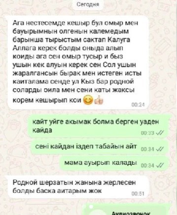 30 жастағы ер адамның мәйіті Талғар қаласының маңында табылған. Тергеу кезінде марқұм туыстарының біріне SMS-хабарлама жіберіп, Шерзаттың жанына жерлеуді сұраған. Полиция сол хабарламаның скриншотын жариялады.