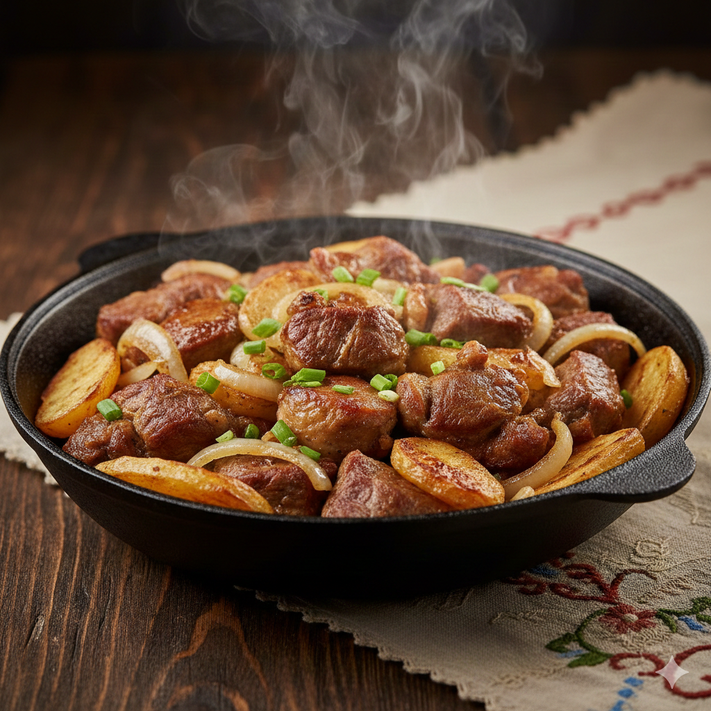 Бұл тағамды дайындау үшін етті ұзақ уақыт маринадтау қажет. Ол үшін бір келі етті ішіне қант, бұрыш, қалампыр, кориандр, сірке суы мен түрлі дәмдеуіштер қосылған 5 литр суға 3-4 тәулікке толығымен батырып қою қажет. Кейін сол етті маринадымен бірге отқа қойып, жарты сағат қайнатады. Қайнаған етті алып, табаға салып, майға орташа отта қызарғанша қуырады. Табада қалған сорпаға жарты стақан құрғақ жүзім шарабын және жарты стақан маринад қосуға болады. Дәміне қарай тұз бен бұрыш қосып, бетін жауып, бір сағатқа жуық бұқтыру қажет. Дайын болған кезде жанына көкөністер немесе картоп қосуға болады.