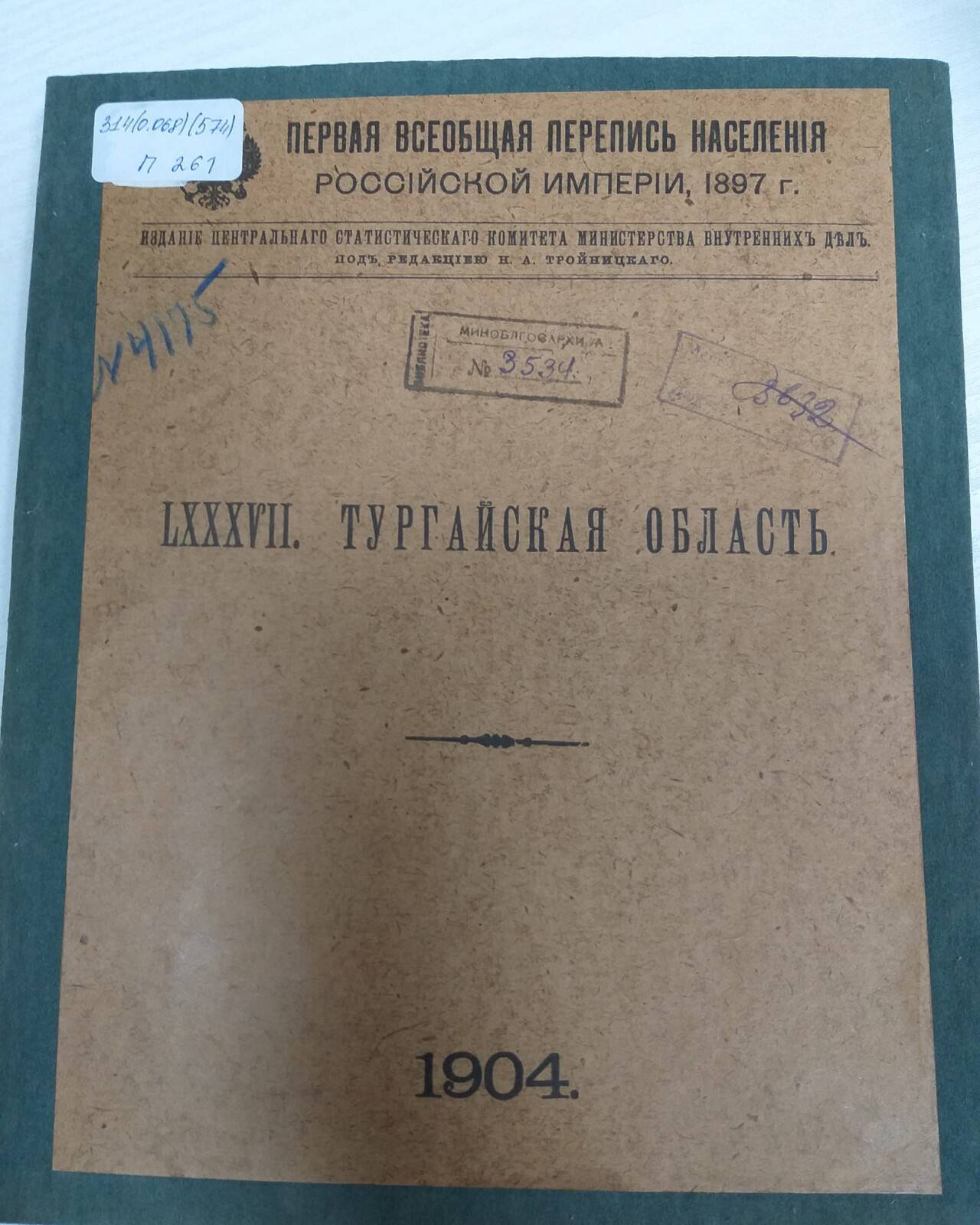 Қолжазбалар және сирек кітаптар ұлттық орталығында 1904 жылы шыққан Торғай облысына қатысты статистикалық жинақ бар. Ол бүгінгі күні сирек кездесетін құжаттар санатында. Тарихи мән-маңызы зор. 1897 жылы Ресей империясында алғашқы халық санағы жүргізілген еді, соның негізінде облыстағы халықтың демографиялық, әлеуметтік жағдайы айқындалған.
