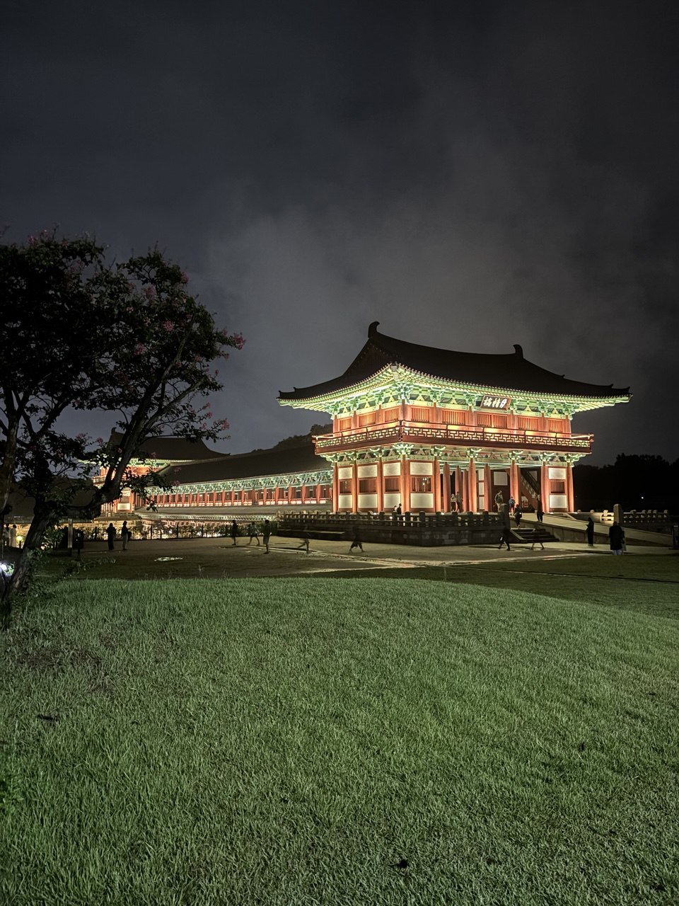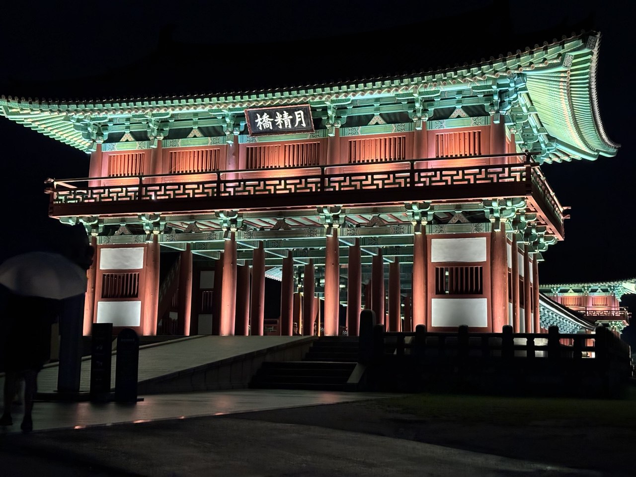 Кёнджудағы ең ғажайып сәттерімнің бірі – Донггун сарайы мен Вольджи тоғанындағы түнгі серуен болды. Күн батып, аспанда толық ай көтерілген сәтте бұл жер ертегідей әлемге айналады. Су бетінде айдың жарығы күміс толқындарға таралып, көне сарайдың бейнесін айнадай айқын көрсетеді.