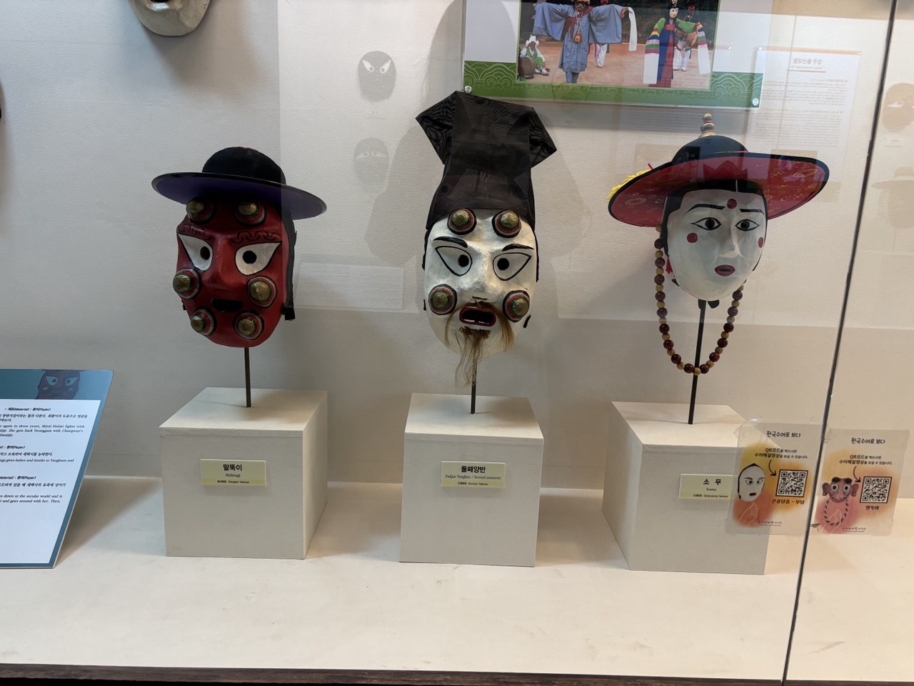 Көрмелер залында мыңдаған жәдігер: тас дәуіріндегі құралдардан бастап, Чосон дәуірінің нәзік фарфор бұйымдарына дейін қойылған. Әсіресе, мені ханбок киімдерінің көрмесі ерекше әсерге бөледі. Әр киімнің түсі мен өрнегінде терең мағына бар – мысалы, қызыл түс қуаныш пен салтанатты білдірсе, көк түс тазалық пен даналықтың белгісі.