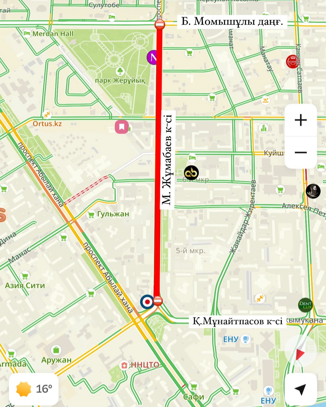 "Информируем жителей и гостей города о проведении работ по ремонту дорожного полотна по проспекту М.Жумабаева на участке от улицы К. Мунайтпасова до проспекта Б. Момышулы. В связи с этим, с 11 по 20 августа движение на участке будет частично перекрыто. При этом движение автотранспортных средств будет организовано в обоих направлениях по одной из сторон", – говорится в сообщении.