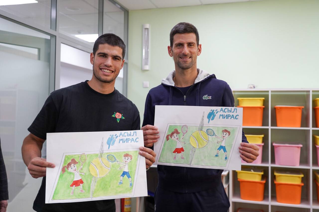Джокович и Алькарас в аутизм-центре "Асыл Мирас" / Фото ФТК