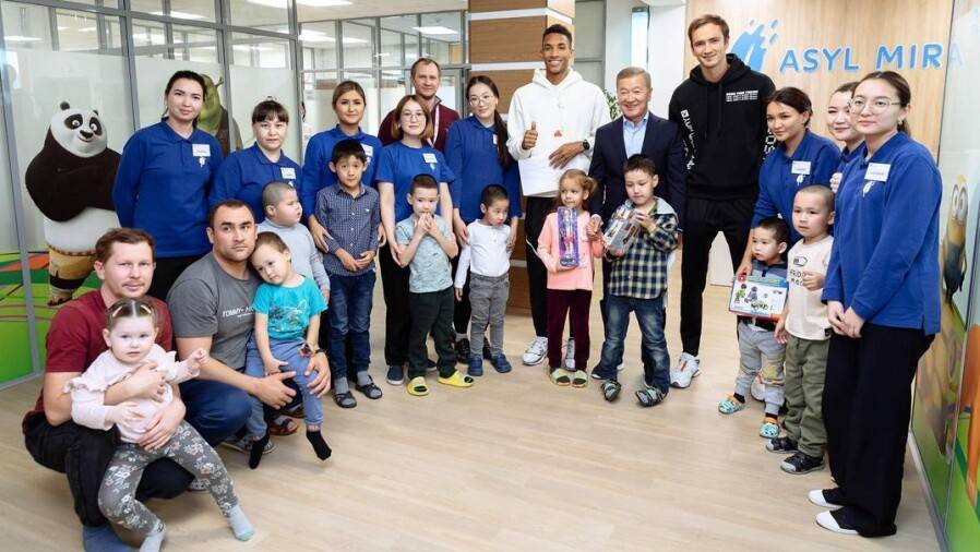 Джокович, Алькарас, Медведев и Оже-Альяссим посетили аутизм-центр в Астане