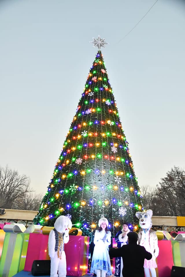 Главную ёлку зажгли 20 декабря. По данным акимата Алматы, одновременно с главной городской ёлкой в каждом районе города зажгли свои ели.