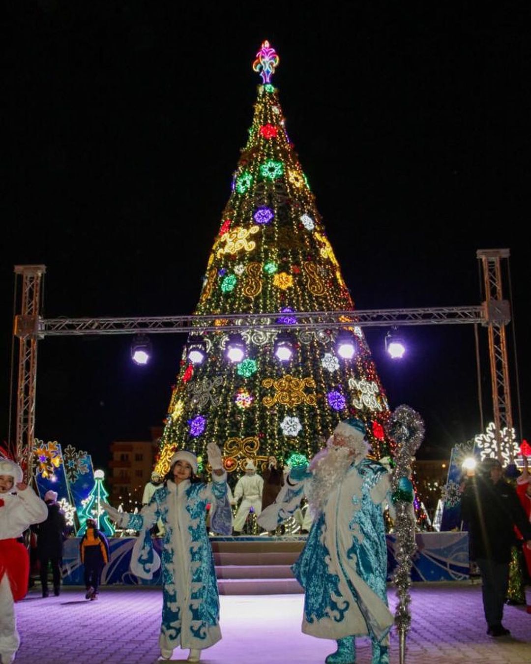 После церемонии зажжения прошёл парад Дедов Морозов и Снегурочек. 60 пар из детских садов, школ, домов культуры, творческих коллективов и творческих семей города прошли по проспекту Абулхаир хана от Музея искусств до Центрального парка. Среди участников парада выбрали победителей, которым подарили путёвки в санаторий, телевизоры и бытовую технику. Остальные получили памятные подарки.