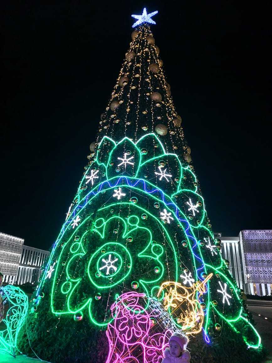 Главную ёлку зажгли 22 декабря. Высота новогоднего дерева – 20 метров. Для украшения ёлки использовали около 10 тысяч украшений.