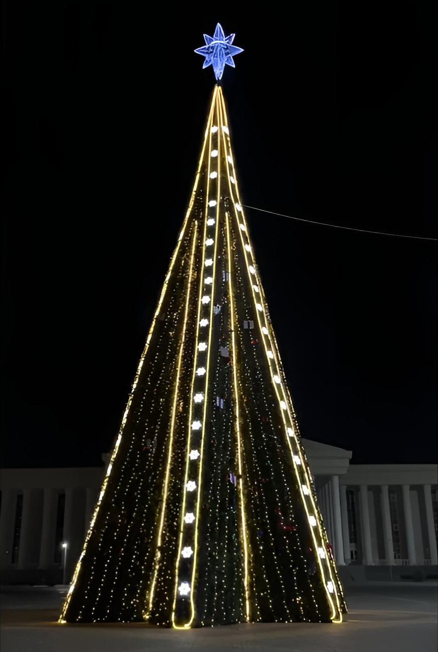 24 декабря зажгли главную ёлку города. Её высота составляет 25 метров, а ширина – 11 метров.