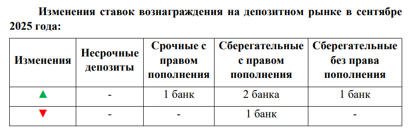 По сберегательным депозитам с правом пополнения в сентябре 2025 года произошли следующие изменения: