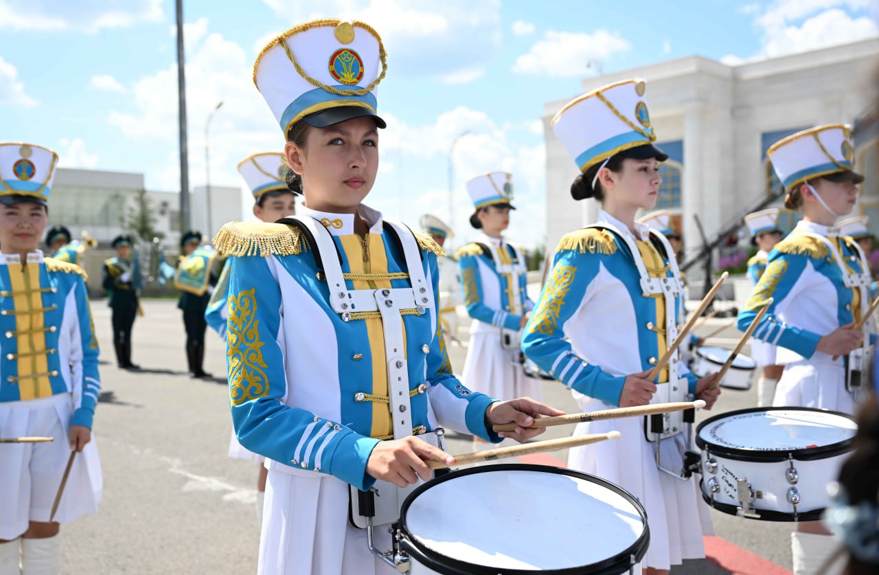 Высокого гостя приветствовали дети с флажками Казахстана и Китая.