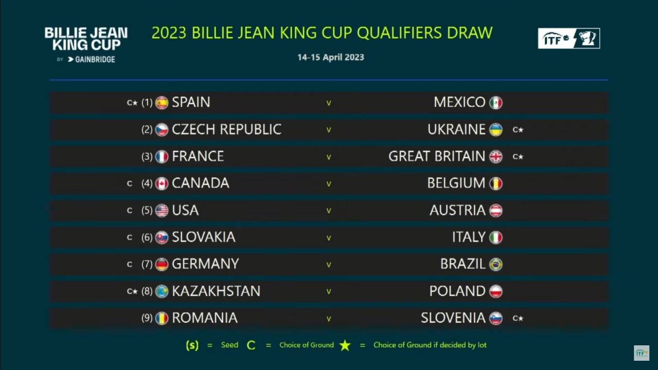 В Глазго (Шотландия) состоялась жеребьёвка квалификационного раунда "Кубка Билли Джин Кинг" на 2023 год.