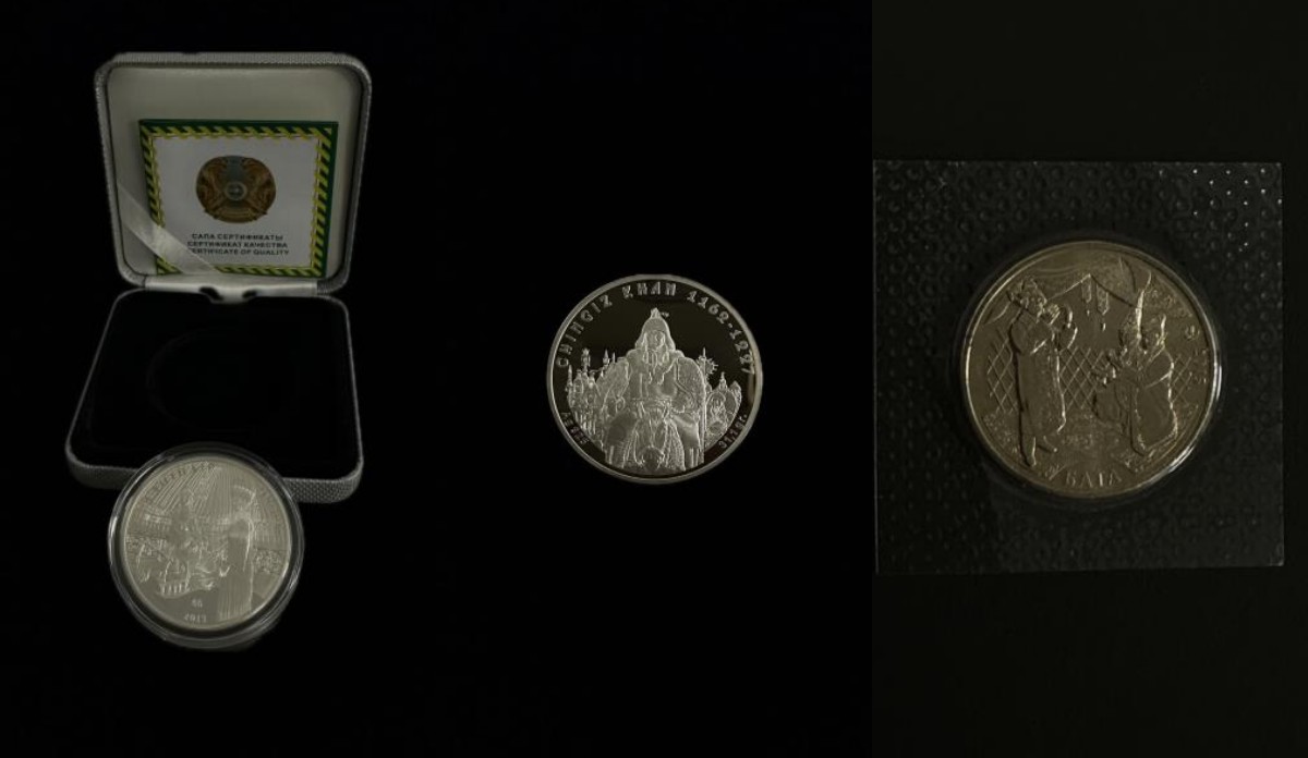 Помимо ювелирных изделий на торги выставили несколько коллекционных монет: "Чингис-хан", "Бата", "Беташар", "Сүйіндір". Стартовая цена составила 106 тысяч и 153 тысячи тенге.