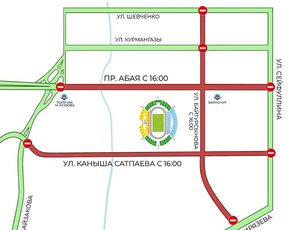 В Алматы перед футбольным матчем между командами "Кайрат" и "Реал", который состоится 30 сентября на Центральном стадионе, перекроют участки трёх центральных улиц. Об этом предупредила пресс-служба департамента полиции мегаполиса.