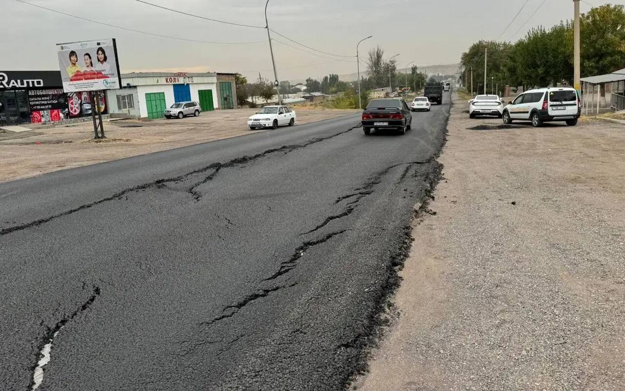 На трассе республиканского значения А-15 в Туркестанской области свежий асфальт разрушился всего за один день, сообщает Kazinform.