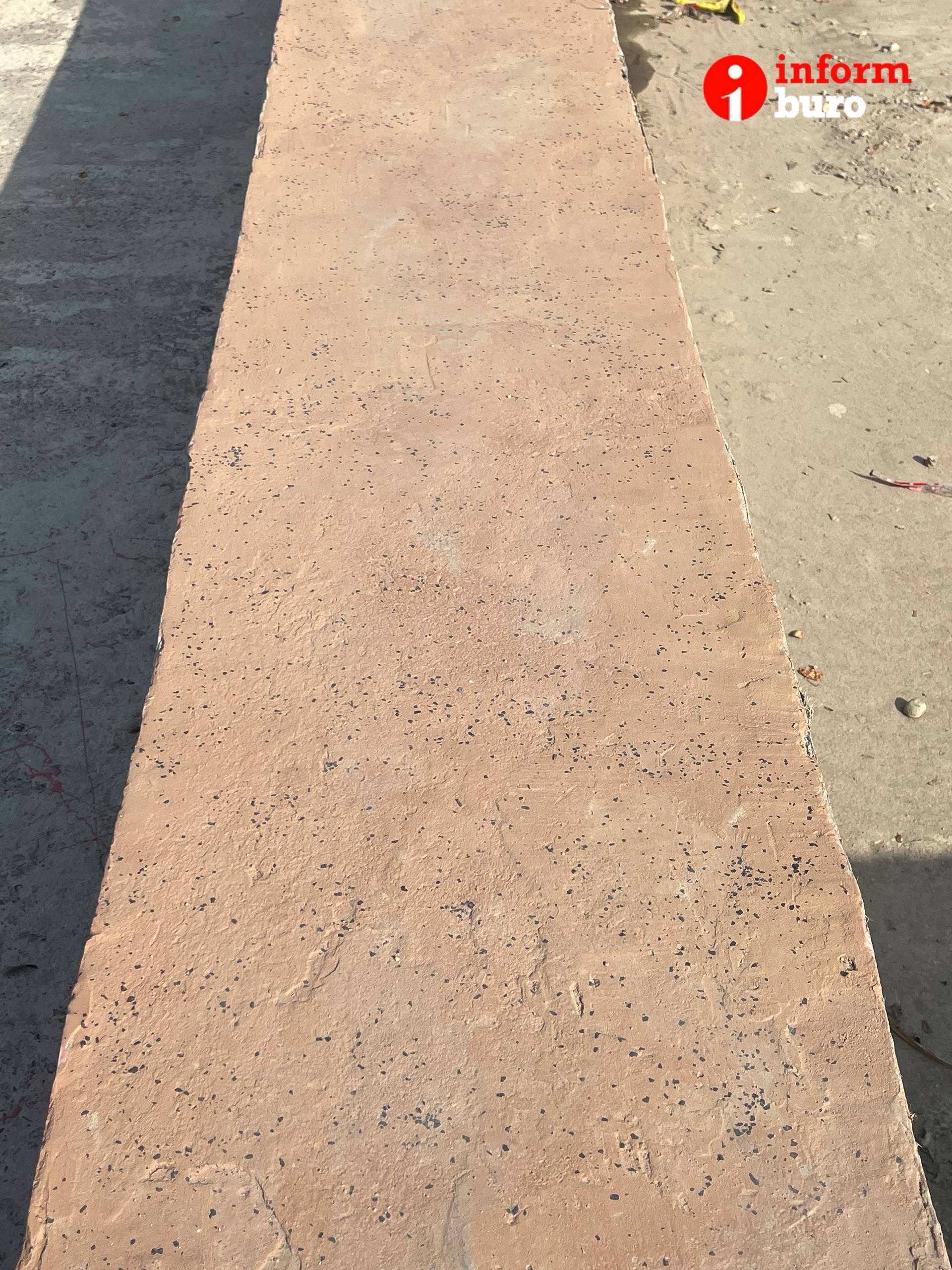 "Тут же был гранитный камень (на парапете. – Авт.). Они покрасили бетон под гранит. Вот смотрите, я своей ручкой расковырял. Здесь же будет постоянно вода, всё же смоет", – возмутился Санжар Бокаев.