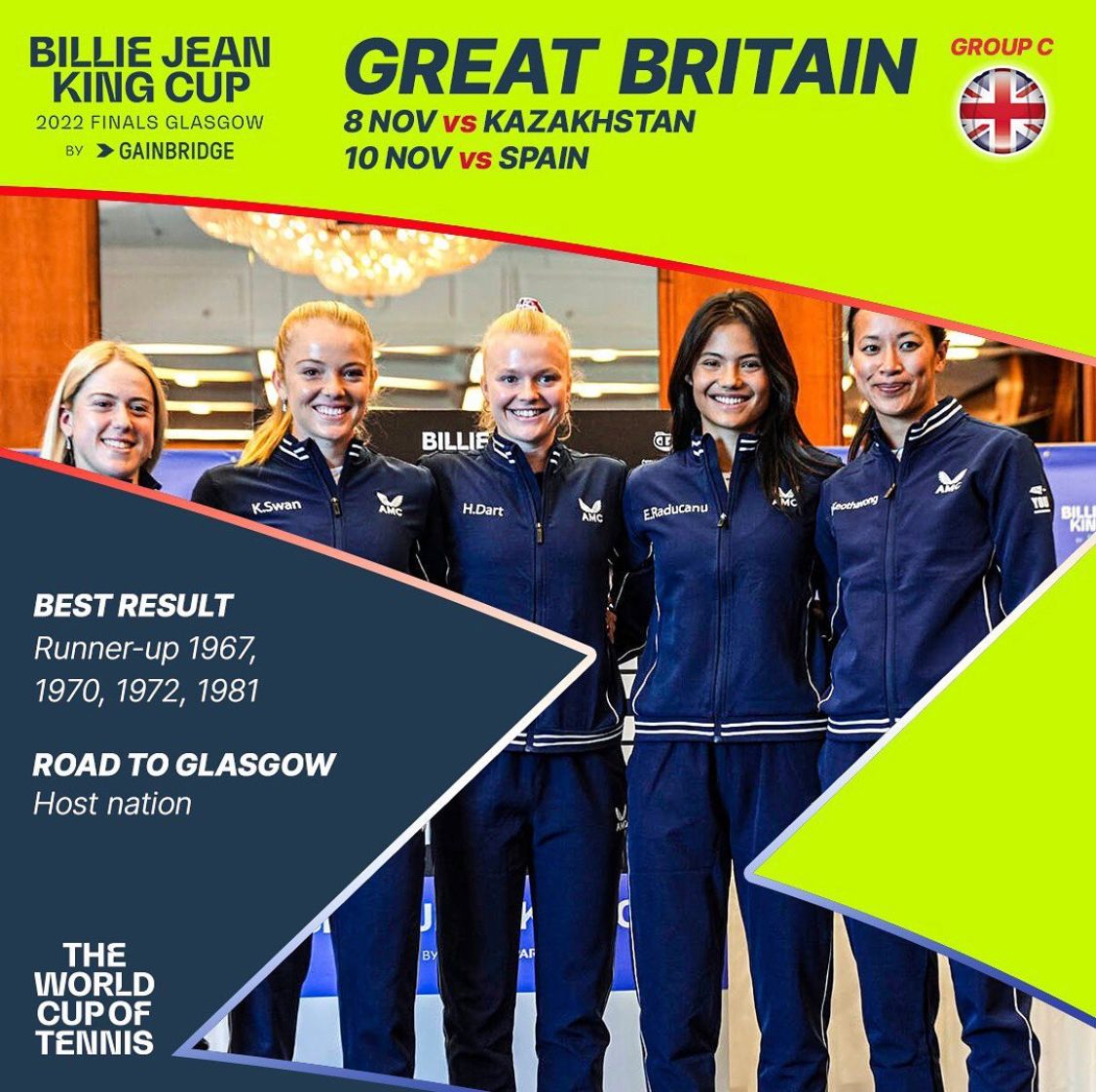 Основная ударная сила Казахстана – чемпионка Уимблдона-2022 Елена Рыбакина. 23-летняя Елена, которая дебютировала в Кубке Билли Джин Кинг за сборную Казахстана в 2021 году, сыграла важнейшую роль в победе над немецкой сборной в квалификации, обыграв Лауру Зигемунд и на тот момент трёхкратную обладательницу титула чемпиона Большого Шлема Анжелику Кербер.