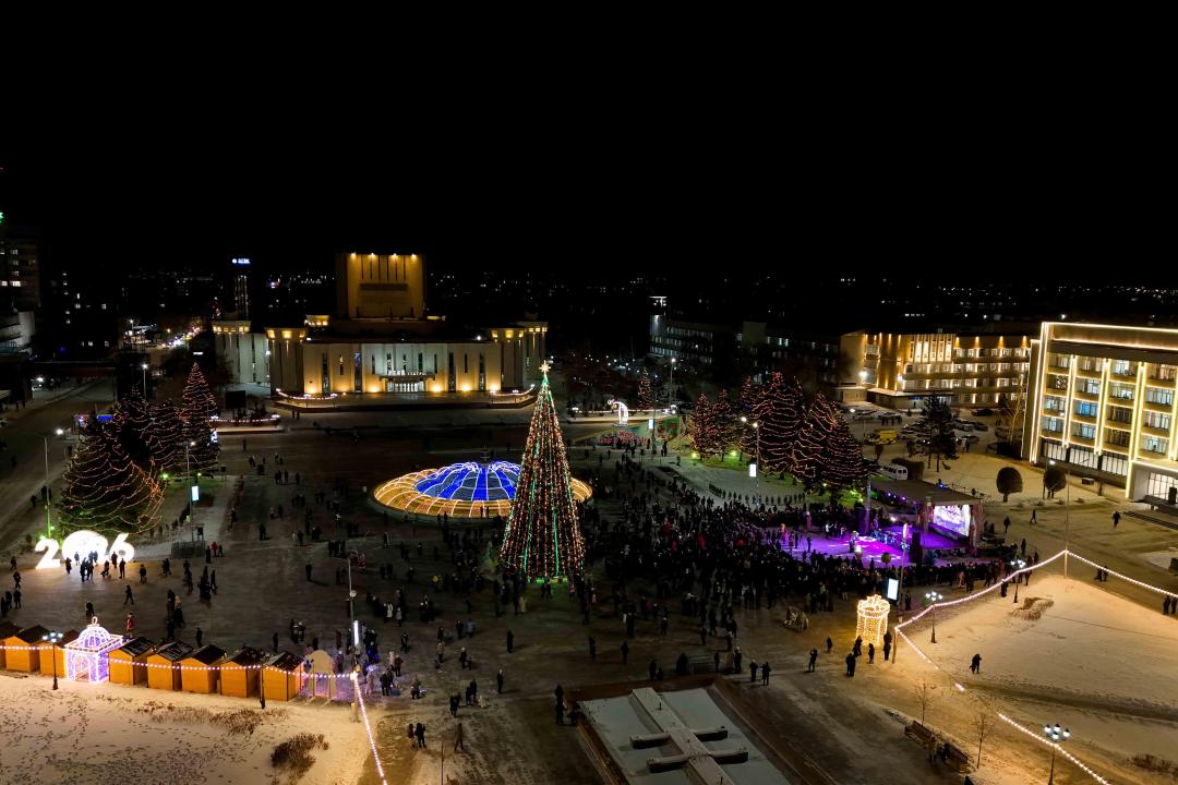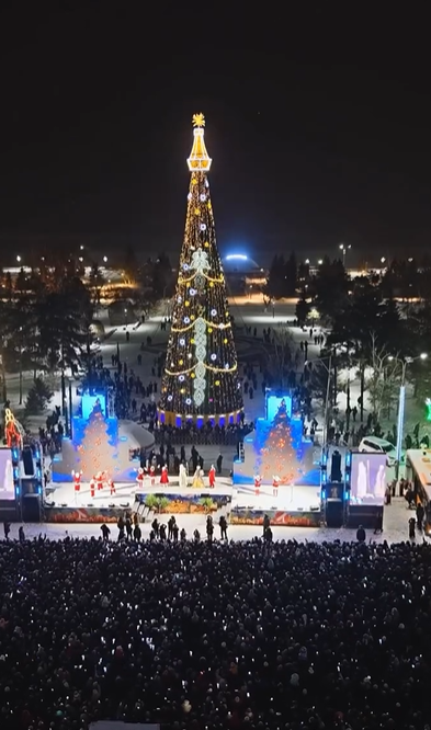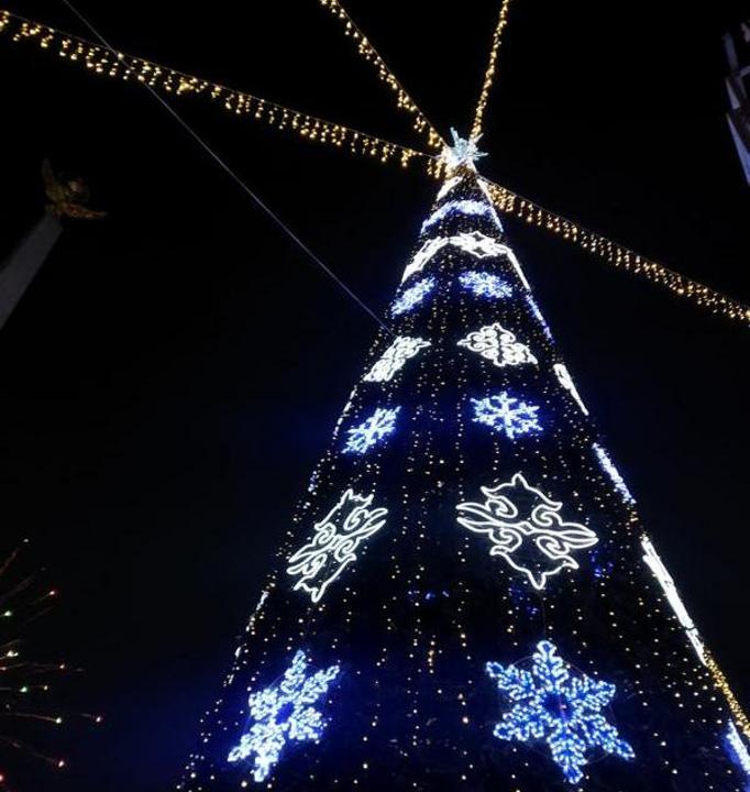 20 декабря главную ёлку города зажгли на Центральной площади. Её высота составила 23 метра. Символ праздника оформили в национальном стиле. Ёлку со всех сторон обволок световой шатёр из гирлянд, а на ней установили крупные светящиеся снежинки.
