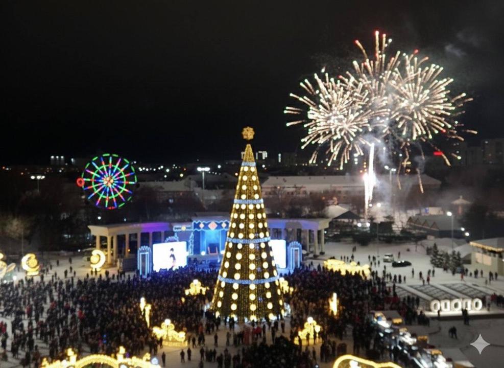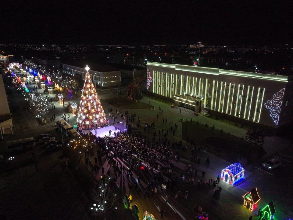 Торжественное мероприятие по зажжению ёлки состоялось 25 декабря на площади Исатай-Махамбет.