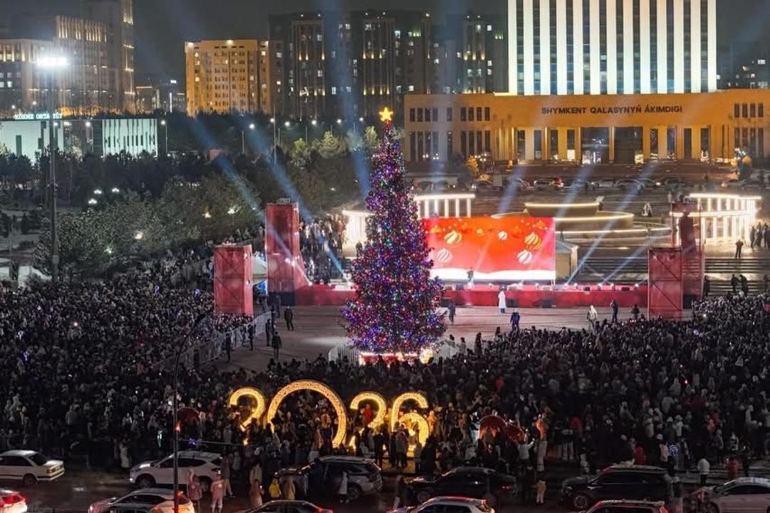 Зажжение главной ёлки состоялось 23 декабря. Её установили на площади историко-культурного комплекса "Көне Тараз".