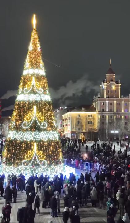 Новогодняя ёлка в городе засияла в ночь на 23 декабря. 30-метровое дерево установили на главной площади Петропавловска.