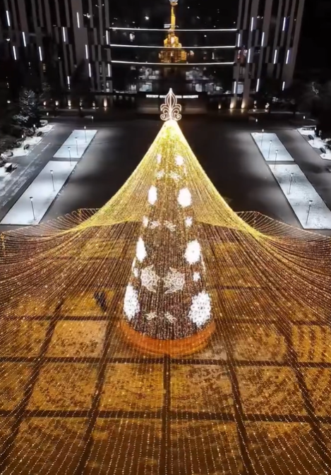 Жители мегаполиса увидели зажжение главной ёлки 21 декабря. По данным Otyrar, её высота составила 18 метров. Символ праздника украсили гирляндами, световыми инсталляциями, а на её вершину установили светящуюся звезду.