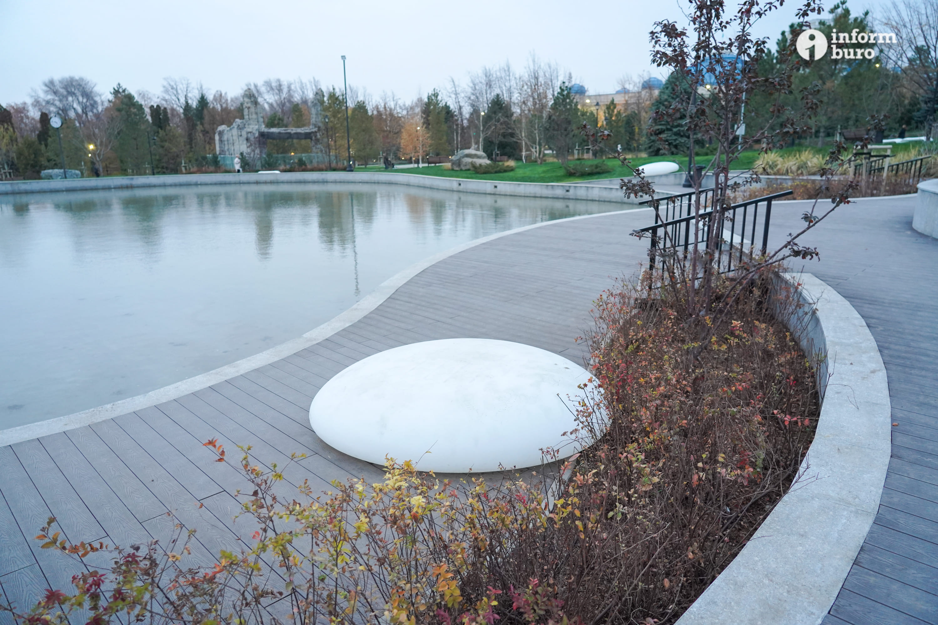 "В ходе работ демонтировали железобетонные конструкции, оставшиеся после старой резиденции. Всего вывезли более 17 тысяч м3 бетона и непригодного грунта. На территории построили пруд, который в зимний период будет использоваться как каток. Завершаются работы по устройству пешеходных, беговых и асфальтовых дорожек", – рассказали в управлении.