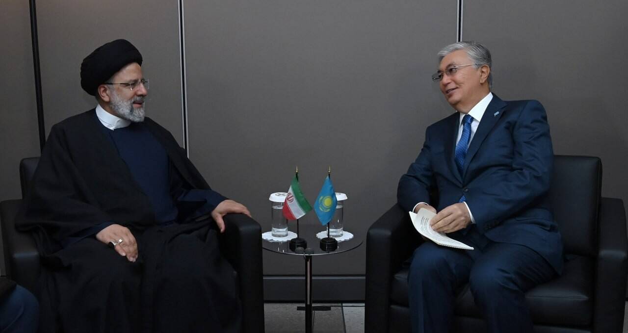 На встрече с президентом Ирана Ибрахимом Раиси Токаев подчеркнул, что Казахстан придаёт большое значение укреплению двусторонних отношений с этой страной в качестве стратегического партнёра в регионе Каспийского моря. Лидеры двух государств отметили важность принятия комплекса мер по наращиванию взаимодействия в сферах транспорта, логистики и торговли.