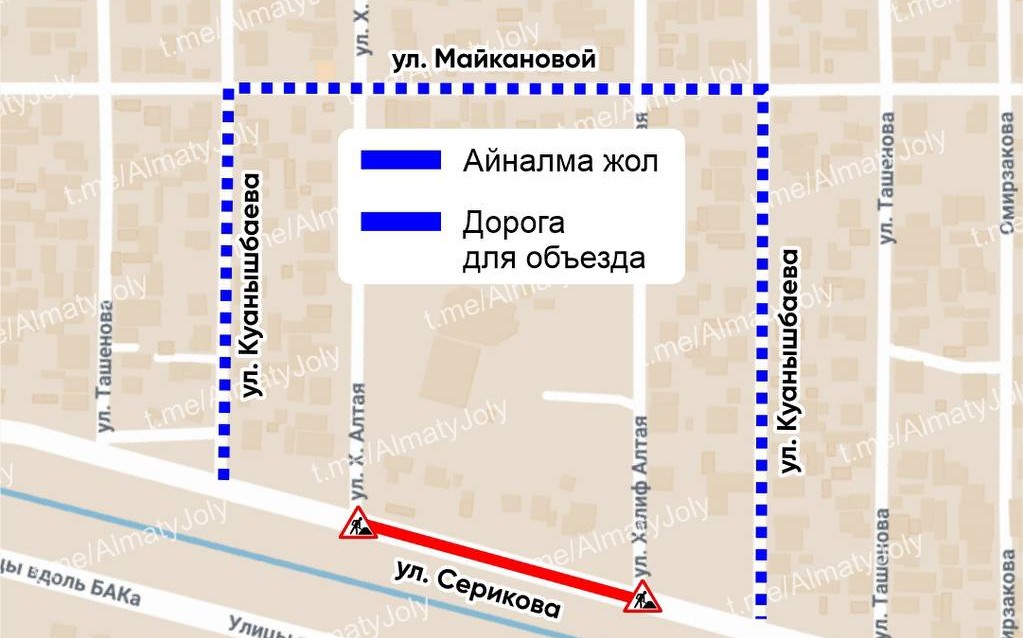 Объезд организуют по улицам Куанышбаева и Майкановой.