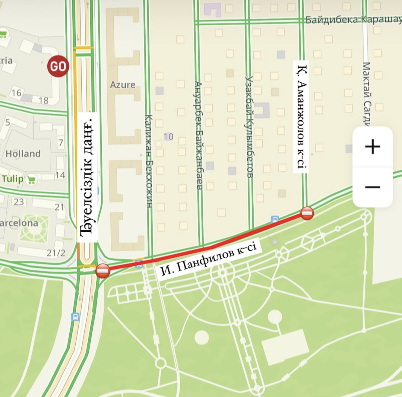 На отрезке от проспекта Тауелсиздик до улицы Аманжолова проведут работы по среднему ремонту дорожного покрытия. При этом проезд автотранспорта организуют по одной из сторон в обоих направлениях.