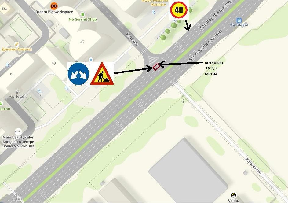"Управление энергетики и водоснабжения информирует о проводимых строительно-монтажных работах на территории микрорайона Горный Гигант в рамках проекта по переустройству насосной станции и инженерных сетей водоснабжения. В связи с выполнением необходимых работ на участке проспекта Аль-Фараби в районе пересечения с улицей Маркова будет временно перекрыта одна полоса движения. Ограничение будет действовать с 21.00 15 ноября до 12.00 16 ноября", – говорится в сообщении.