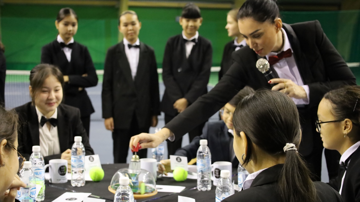 "Знаете ли вы, где Елена Рыбакина выиграла свой первый титул? Сколько Больших шлемов выиграл Джокович? Не знаете? А юные воспитанники теннисного центра города Атырау – знают!" – отмечается в сообщении.