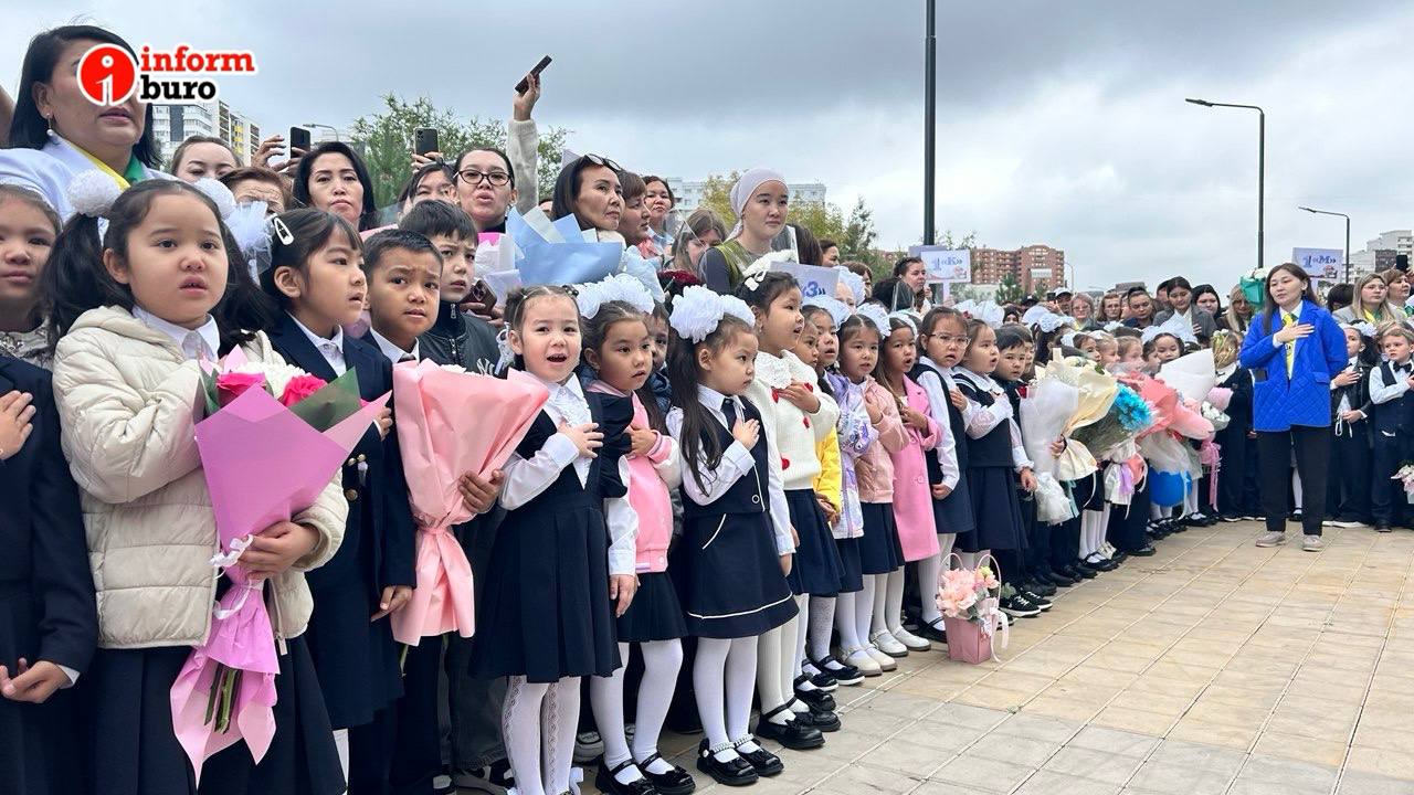 Сотни первоклассников и их родные собрались на торжественную линейку по этому случаю. После концертной программы, сопровождавшейся исполнением песен, танцев и композиций на домбре, прозвучал долгожданный первый звонок.