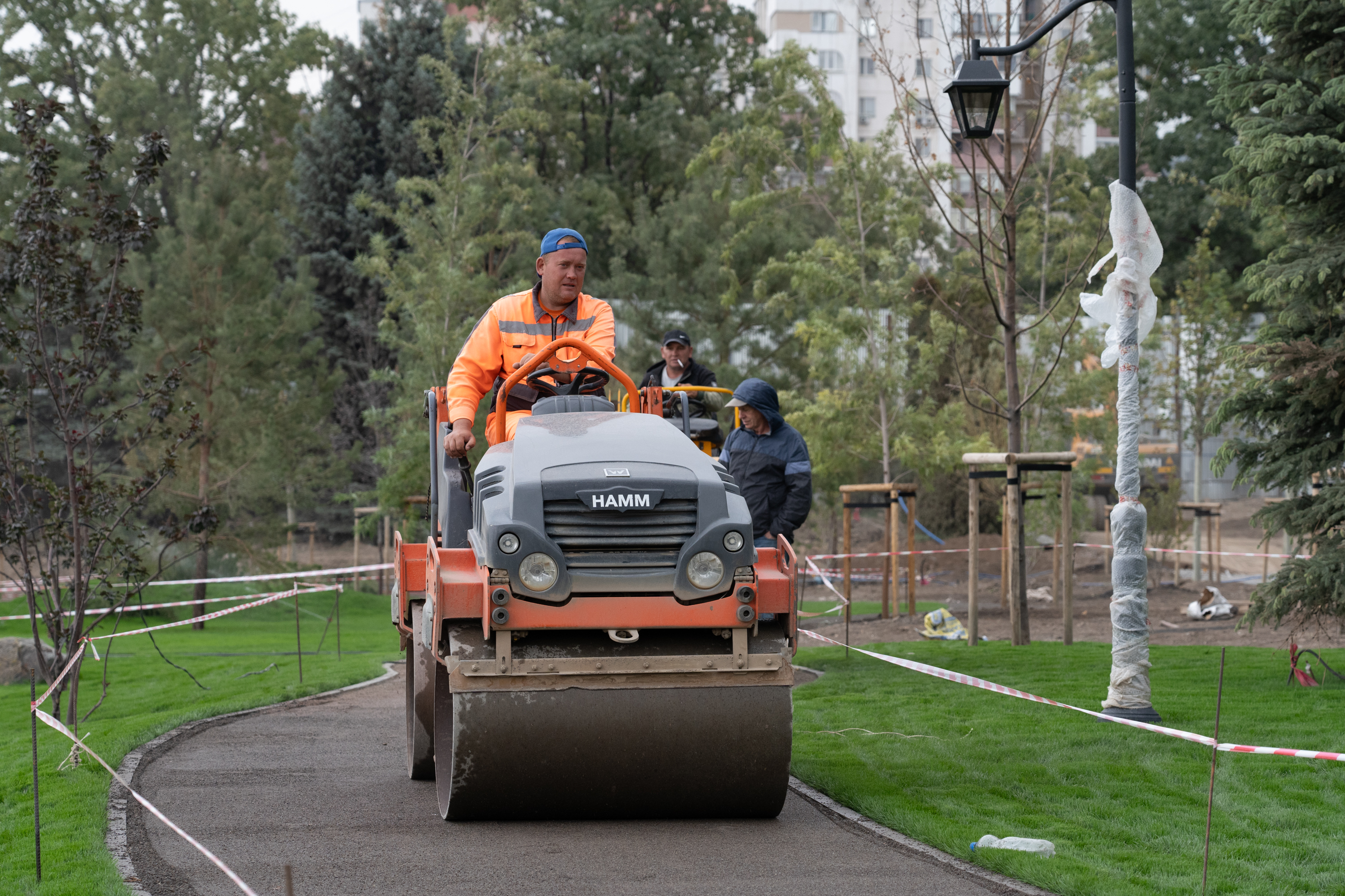 Проделан гигантский труд, но предстоит решить ещё немало задач. Рабочие устанавливают бордюры и пешеходные зоны, готовят площадки для посадки зелёных насаждений и клумб.