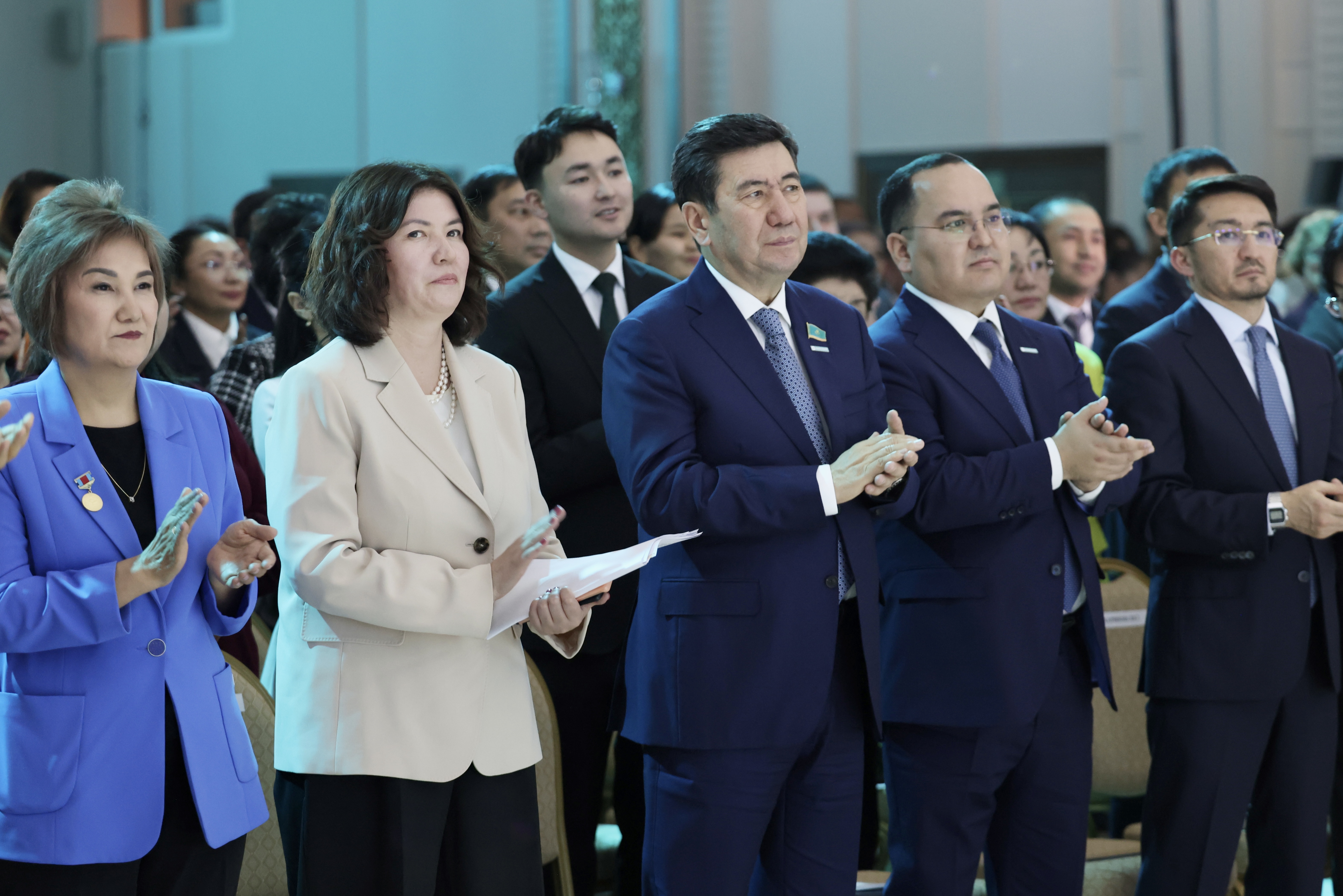 В завершение мероприятия Ерлан Кошанов вручил ряду участников партийную награду "Ұстаз – ұлт айнасы". Начиная с текущего года это будет постоянной наградой, которой ежегодно будут отмечаться лучшие педагоги страны. Также за заслуги в профессиональной деятельности ведомственные награды учителям вручили заместитель премьер-министра – министр искусственного интеллекта и цифрового развития Жаслан Мадиев и министр просвещения Жулдыз Сулейменова.