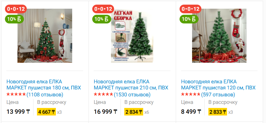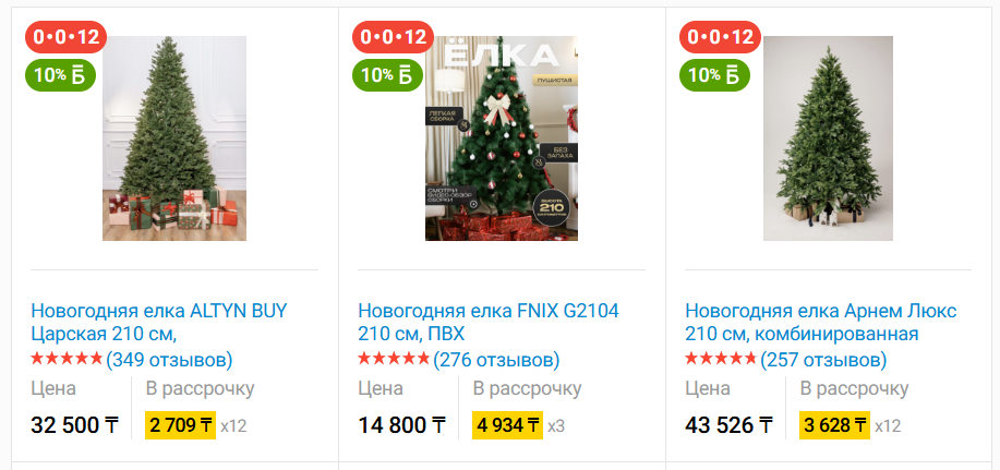 По-прежнему востребованы недорогие ёлки из ПВХ. Их цена начинается от 1000 тенге за миниатюрное дерево 45 см и доходит до 17 тыс. тенге за двухметровую модель. Иголки у них напоминают жёсткую мишуру, а гибкий каркас позволяет легко прижимать ветки к стволу для удобного хранения. Несмотря на то, что такие деревья могут со временем осыпаться, при аккуратном обращении срок их службы составляет от пяти лет и выше.