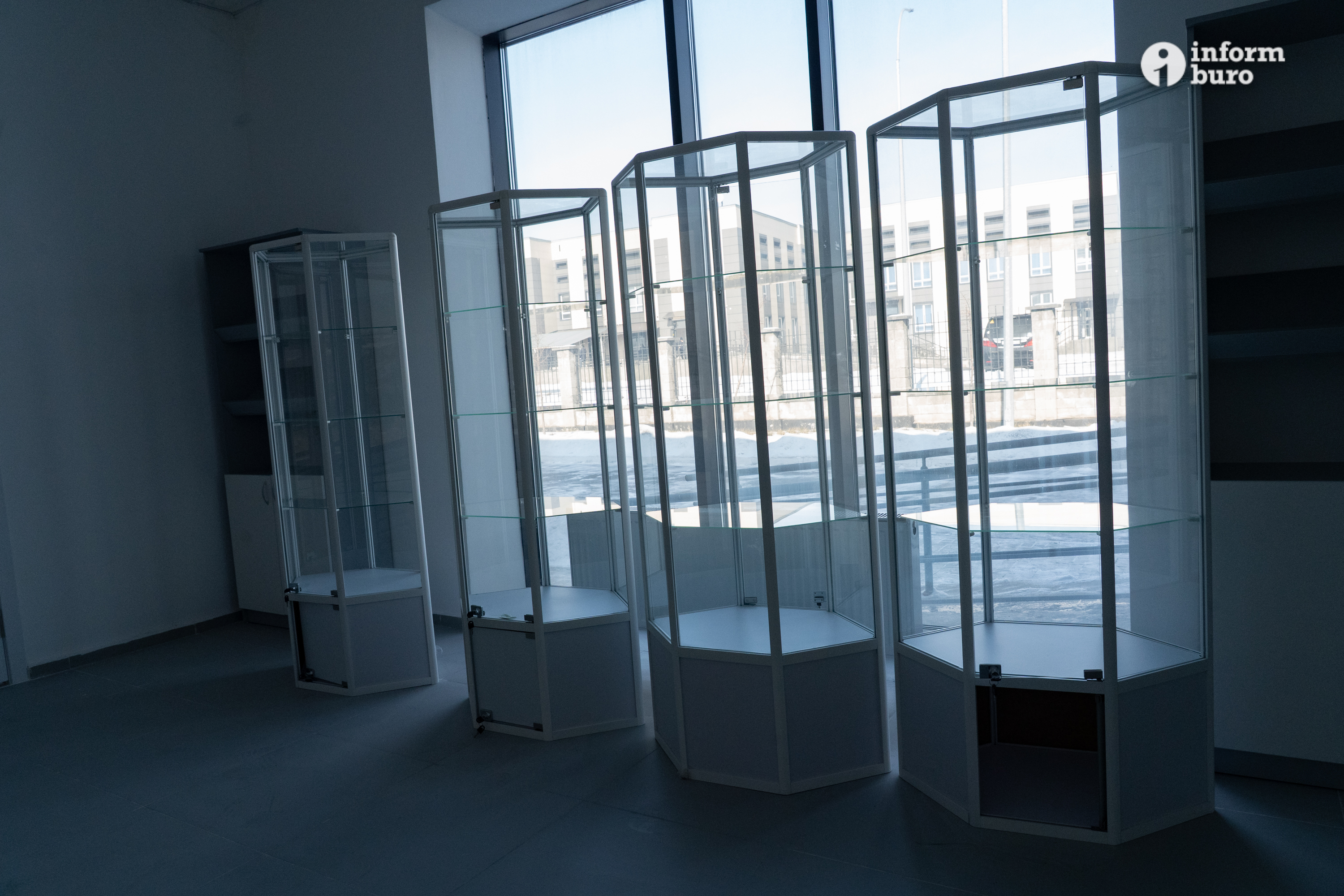 Магазин ритуальных услуг пока не работает. В нём установлены витражные шкафы, полки которых пустуют, но как только крематорий приступит к работе, на них появятся урны для праха, венки и траурные ленты, каталоги с образцами гробов.