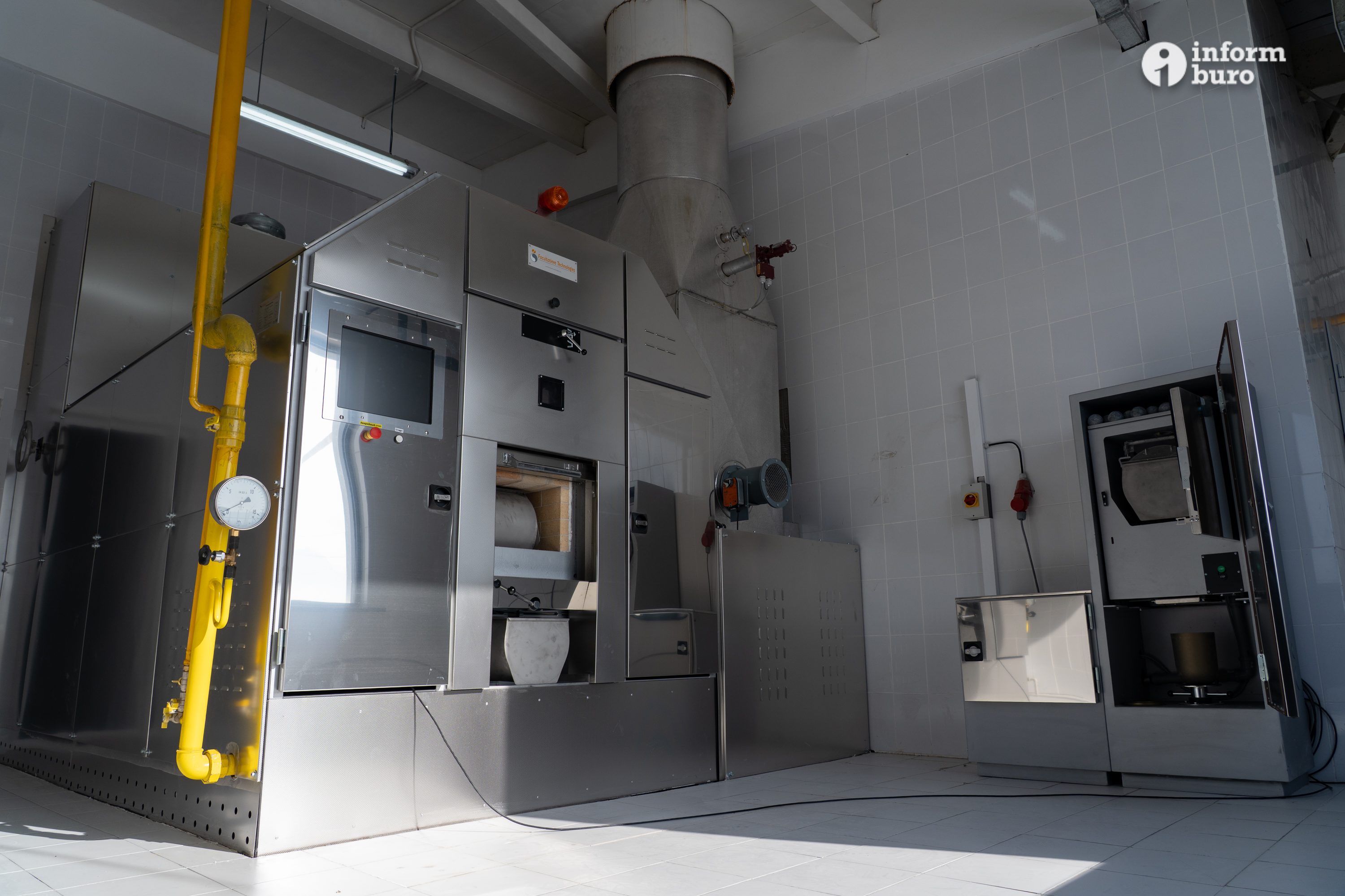 В отделении кремации две современные кремационные печи чешского производства. На специальной каталке сюда будут доставлять гроб с телом. Позже его поместят в специальный подъёмник, транспортирующий гроб в печь.