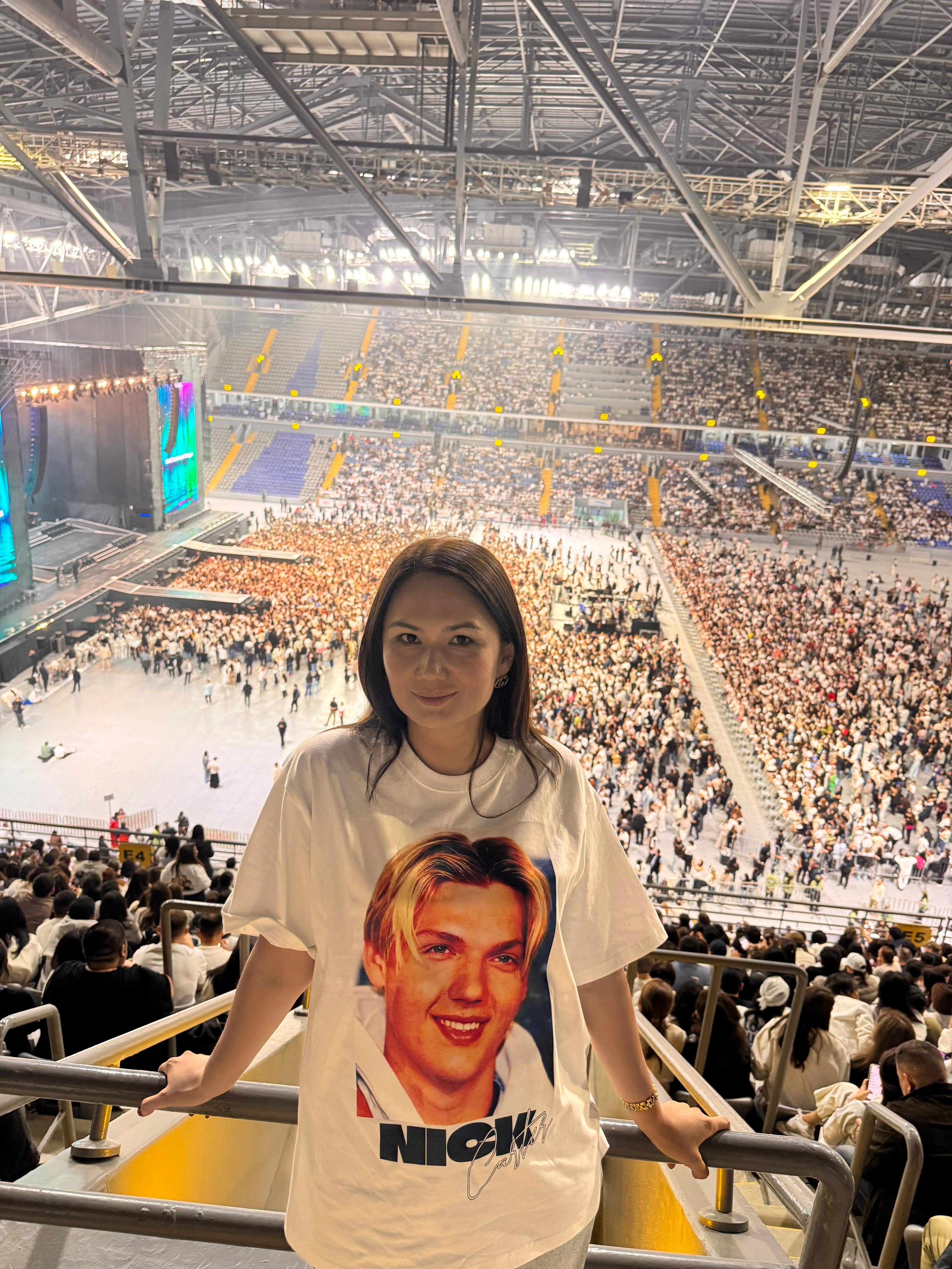Фанатка Айгерим поблагодарила супруга за подарок – совместный поход на живой концерт любимцев её юности: "Прошло больше 25 лет, и ты как будто снова на школьной дискотеке, ты молод, беспечен, и вся жизнь впереди". Она обожала Ника Картера, и ещё на 13-летие подруга подарила ей его фото с надеждой, что когда-нибудь звёздный квинтет заглянет в Казахстан. Пожелания подруги оказались пророческими.