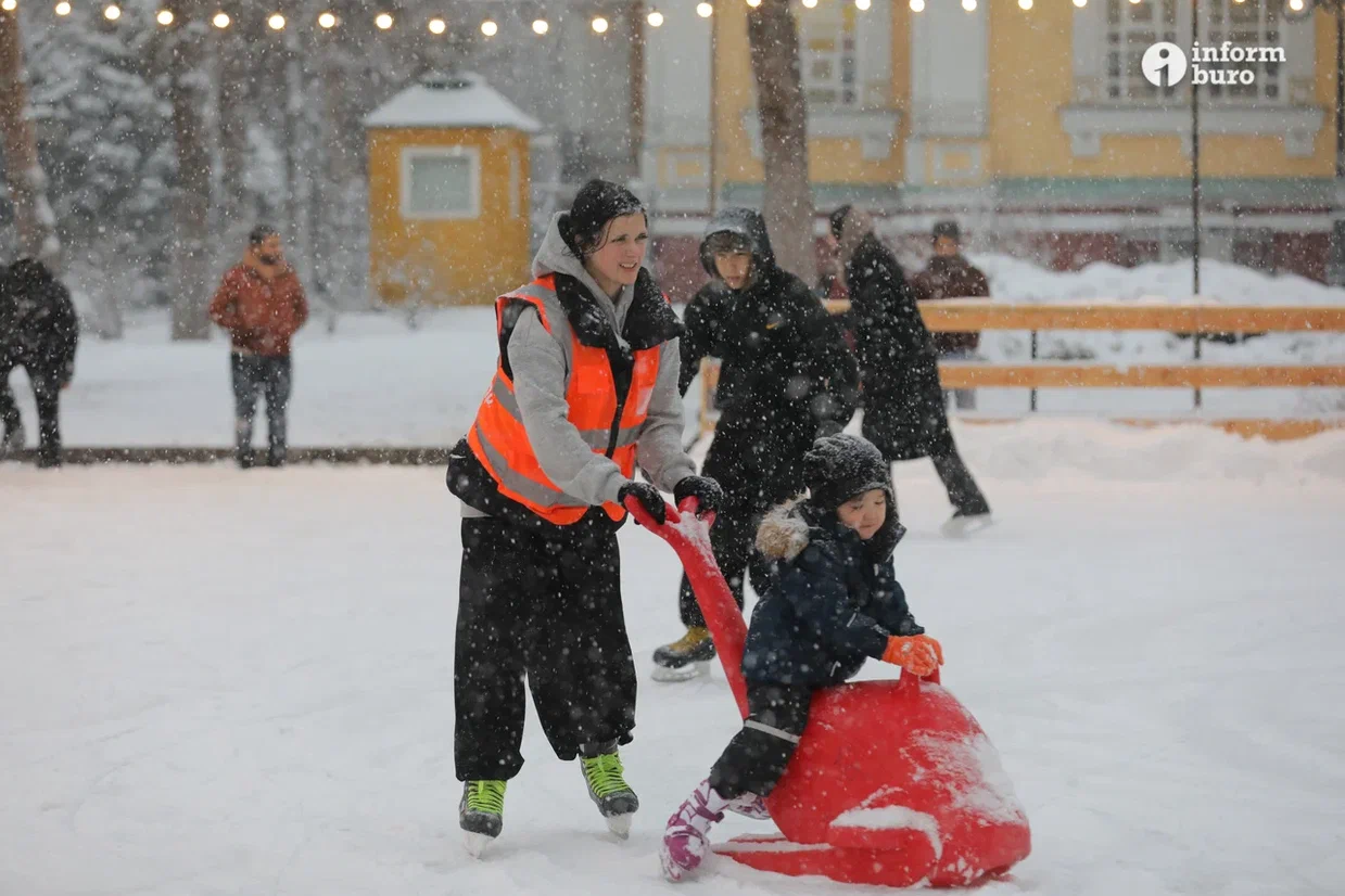 На катке, расположенном у центрального входа в Парк первого президента, в любой день собираются внушительные толпы посетителей. Нередко сюда приезжают покататься на коньках жители других районов города.