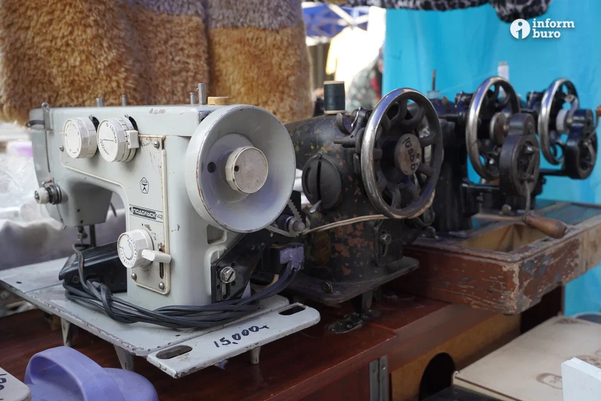 Отдельное место на рынке занимают прославленные швейные машинки "Зингер" и их советский аналог "Подольск" – мечта любой советской женщины. Некоторые из них выглядят весьма непрезентабельно, видимо, заботились о них не лучшим образом. Однако все они работают, и опытные мастерицы покупают их для шитья кожаных изделий.