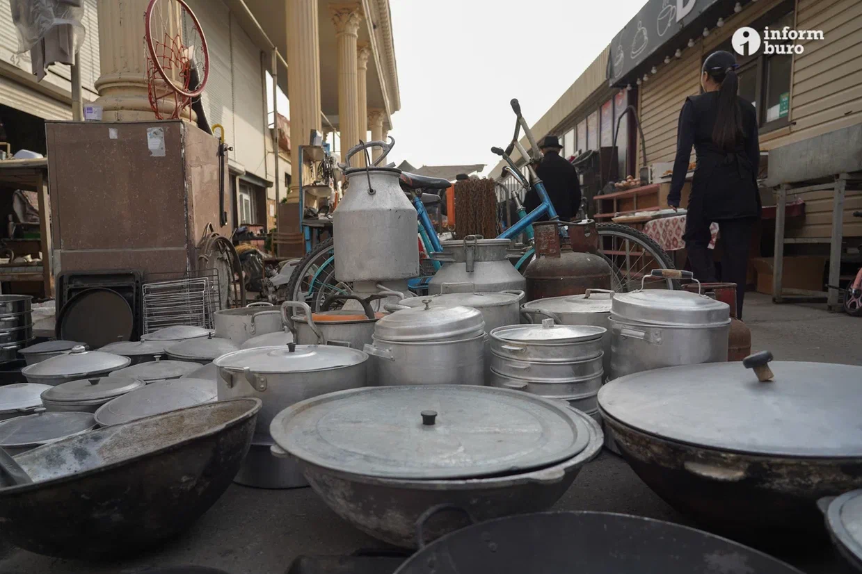 Бойкая торговля идёт в рядах с казанами, сковородками, кастрюлями, тазами и чайниками. Цены от трёх тысяч тенге. При покупке нескольких вещей гарантирована скидка. Большие казаны – лидеры продаж, их обычно приобретают для кафе и придорожных ресторанов.