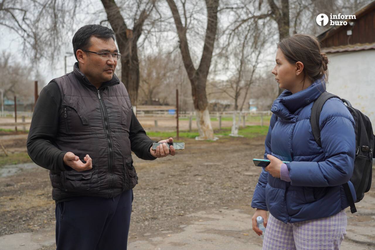 "Вы посмотрите вокруг! Ипподром в ужасающем состоянии. Много лет его эксплуатировали, не вкладывая ни копейки. Накопились проблемы со светом и водой. Недавно стало прорывать трубы, и теперь мы вынуждены привозить воду. Своими силами не справляемся, пришлось нанимать спецов с тяжёлой техникой. Вы думаете, мне нравится землю перекапывать? Да мы миллионы отдадим за этот ремонт, чтобы вода была", – объяснил Талгат Жайсанбаев.