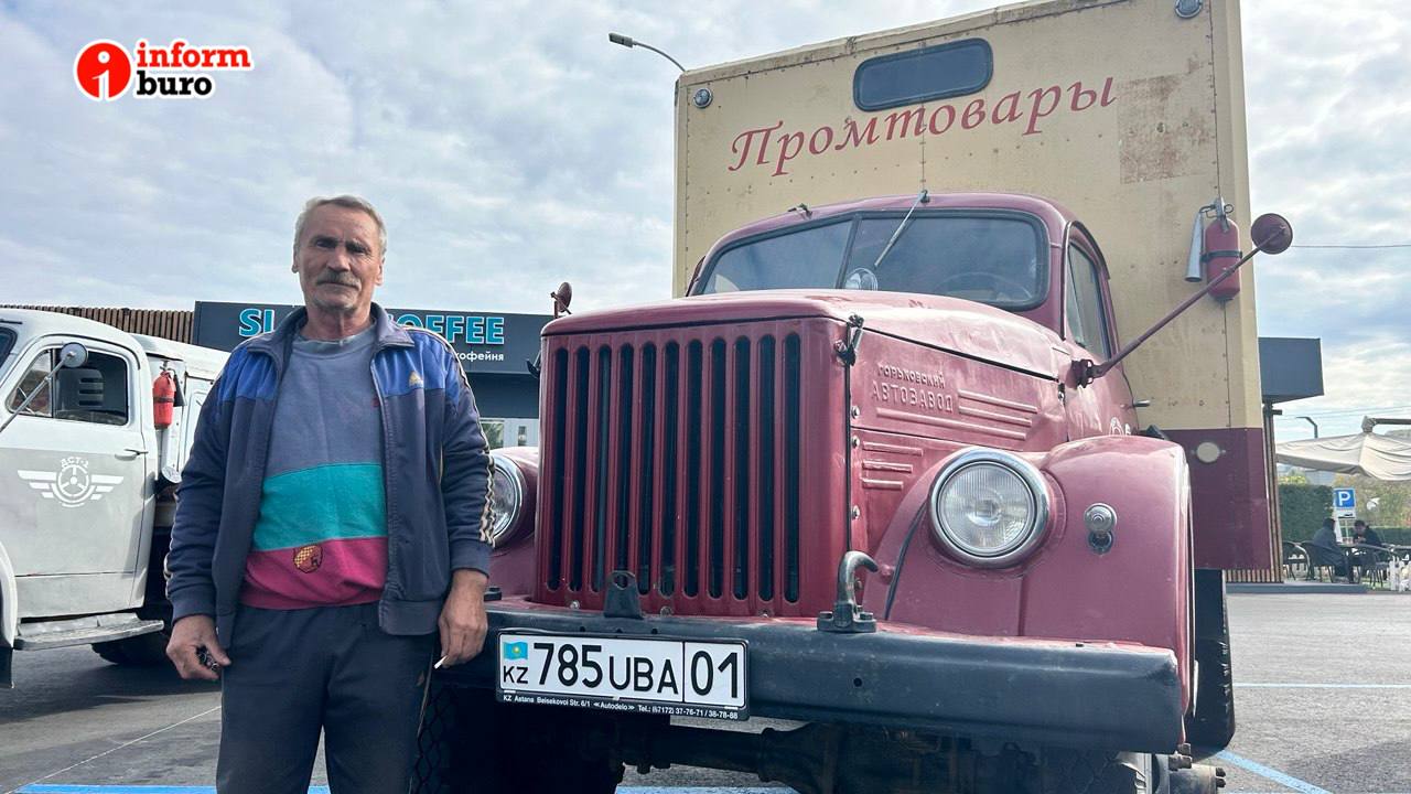 У в прошлом военного Владимира Ильченко водительский стаж свыше 40 лет – с 1983 года. Сегодня он за рулём ГАЗ-51 автолавки "Промтовары", которые считались главным двигателем народного хозяйства СССР.