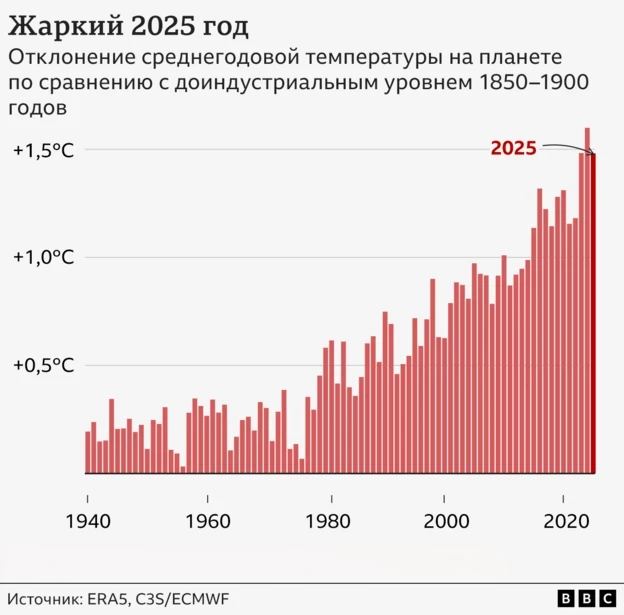 Прошлый, 2025 год в тройке антилидеров оказался на третьем месте, уступив всего 0,1°C позапрошлому и 0,13°C рекордному 2024-му. И это не исключение, а скорее подтверждение тревожной тенденции.